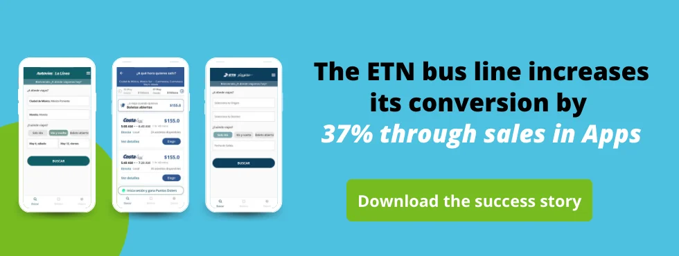 As we mentioned before, with an App you will have better efficiency and recurrence. Just visualize this: With a mobile app you will be able to convert a percentage of the volume of clients that you have in a channel such as the mobile web to a user of your native application that will always have you at the Top of Mind when deciding how to travel, and this at their turn translates into increased profits by having a more efficient channel with higher conversion.