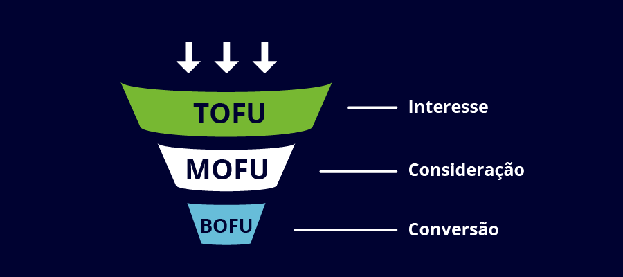 TOFU: Interesse. Nesse estágio, o usuário pesquisa com base em uma necessidade. Nosso trabalho é ter todas as informações que possam atender a essa necessidade e levá-lo ao site para convencê-lo a comprar.
