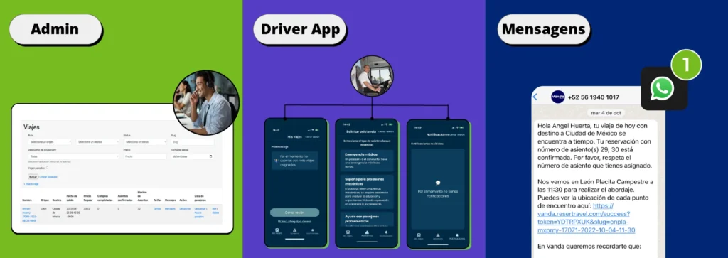 A eficiência e a comunicação são fundamentais para garantir viagens seguras e satisfatórias. Nesse sentido, a Reservamos SaaS deu um passo à frente com o lançamento do BusTracker, uma solução integral projetada para otimizar e digitalizar a venda de passagens rodoviárias ao mesmo tempo em que mantém (e melhora) a comunicação entre o centro de operações, os motoristas e os passageiros; tudo isso é alcançado através de três componentes principais: Admin, Driver App e Mensagens pelo WhatsApp.