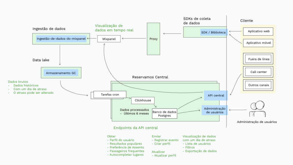 Ao atuar como um Data Lake, o ReservamosONE centraliza as informações provenientes de diversos canais de venda (web, mobile, bilheteria), permitindo que as empresas obtenham uma visão abrangente de seus clientes e operações, compreendendo suas necessidades, preferências e comportamentos de compra.