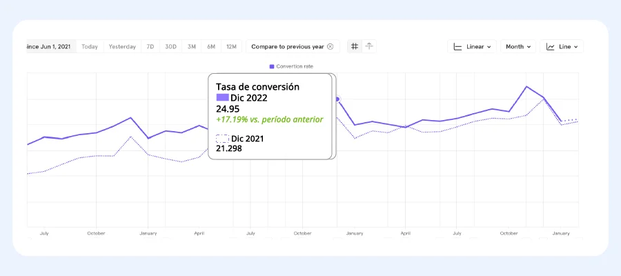 Desde la implementación de Platform AI, potenciada por el widget de búsqueda, nuestros aliados han alcanzado un crecimiento de 3 puntos porcentuales en la conversión de sus eCommerce. Para una empresa que cuenta con un tráfico de un millón de usuarios al mes, se traduce en 30 mil nuevos usuarios que concretan sus compras a través del canal directo de venta digital de la propia empresa.